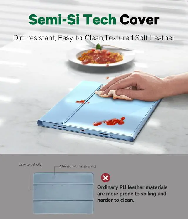 Stain Resistant Surface: Crafted with SKIN/semiSi-tech material, our case with keyboard for iPad Air 13 resists common stains like soy sauce, ink, or coffee. Wipe away messes effortlessly and keep your iPad Air 2024 keyboard case looking pristine. No more worrying about yellowing or oxidation!