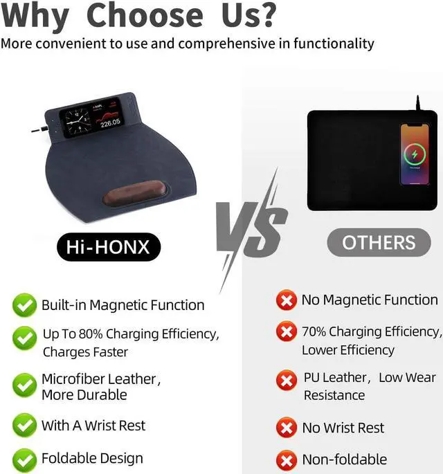 Magnetic Design: The built-in magnetic function ensures a stable hold for smartphones and other Qi devices during charging. Whether in the office or during gaming sessions, your devices stay in place, eliminating the worry of slipping