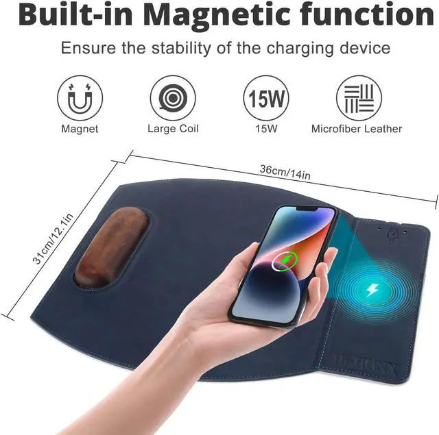High-quality Detail: Our magnetic wireless charging mouse pad is crafted with premium microfiber leather fabric, offering a surface with an unparalleled smo
