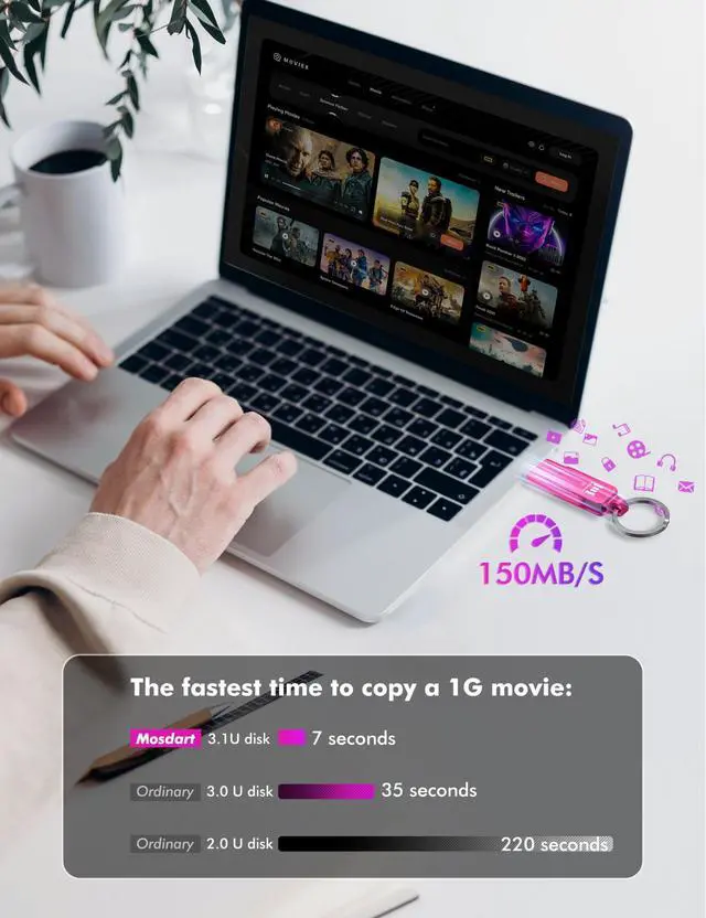 Blazing-fast data transfer: Say goodbye to long wait times! Our USB C 3.1 thumb drive boasts lightning-fast data transfer speeds up to 150MB/S, allowing you to transfer files in just seconds.