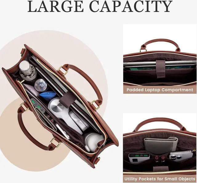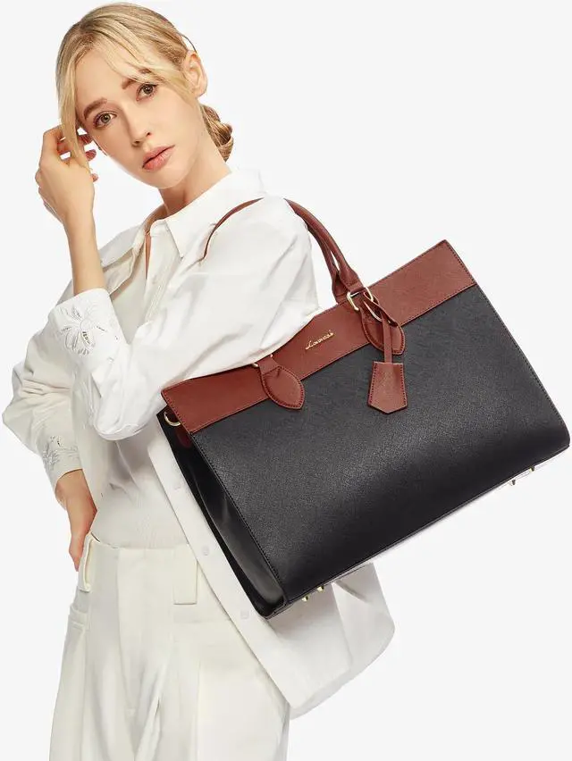 LOVEVOOK Laptop Bag for Women, 15.6 inch Leather Tote Bag Work Business Office Bag Waterproof Briefcase Computer Handbag Shoulder, Black-Brown