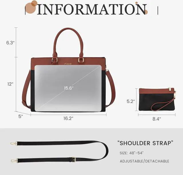 [(One Bag Fits All Occasion)] This computer bag for women comes with adjustable and detachable shoulder straps and can function as a handbag, shoulder bag, or crossbody bag, making it suitable for work, business tri