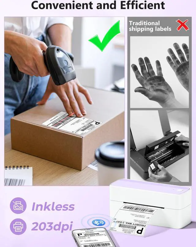 Phomemo Bluetooth Thermal Label Printer, 241BT 4X6 Wireless Shipping Label Printer for Small Business, Labels Printers for Shipping Package, Compatible with iPhone, Android, Purple