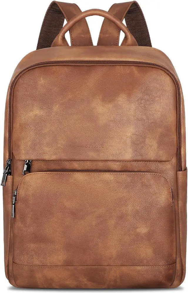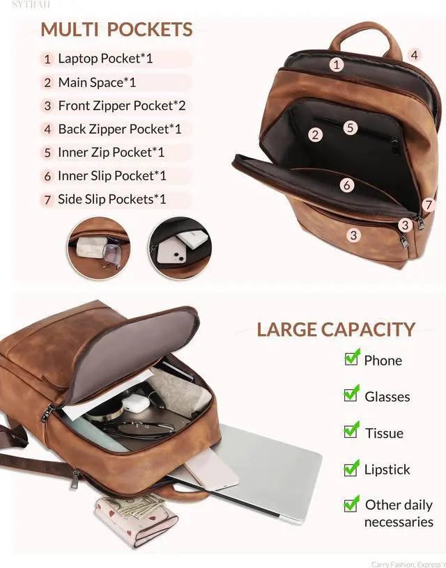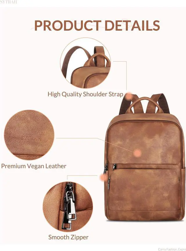 SYTRAH Leather Backpack for Women, Vintage 15.6 inch Laptop Backpack Purse for Women, College Casual Backpacks Ladies Computer Bags for Travel Business Work Mocha Brown