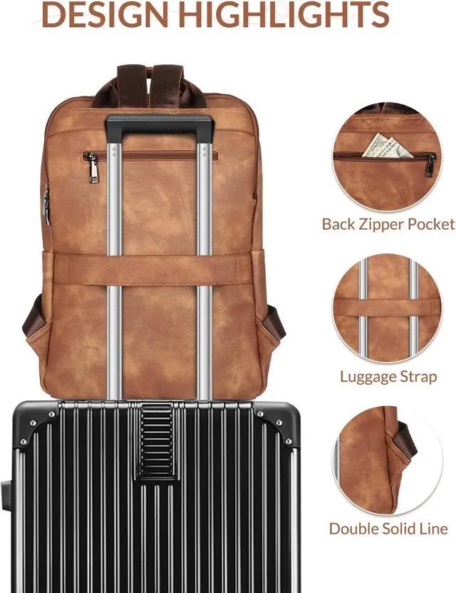 Premium Quality - This leather laptop backpack ensure durability with strict material and hardware selection. The women's leather backpack boasts high-quality workmanship. Crafted from the newest waterproof soft PU leather, this lightweight and durable material make it ideal for various scenarios, including light rain and snow. Experience sturdiness with this backpack purse.