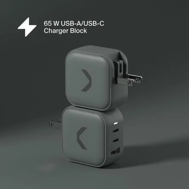 65W USB-A/USB-C Charger Block: Save time with quick-charging technology. Up to 13x faster than a traditional 5W charger, so you can simultaneously charge your favorite devices quickly and safely. Charge a MacBook Air M2 to 50% in just 30 minutes.