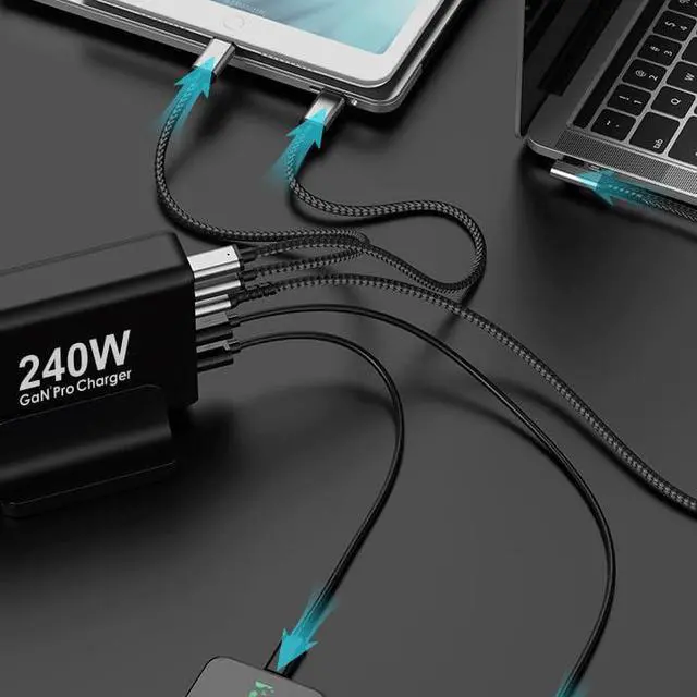 Output: USB-C1+C2+C3+A1=100W+65W+45W+30W (Max 240W) USB-C1+C2+C3+A2=100W+65W+12W+12W (Max 189W) USB-C2+C3+A1+A2=100W+12W+30W+12W (Max 154W) C1+C2+A1+A2=100W+65W+30W+30W (Max 225) 5-Ports
