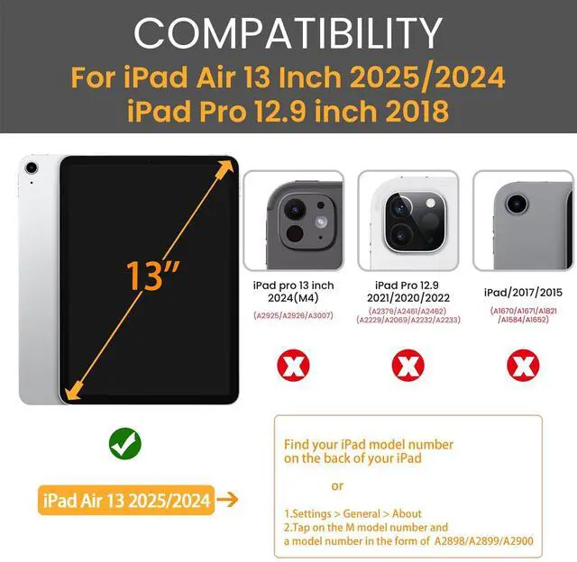 [(Campatability)] Designed for New iPad Air 13 Inch M3 2025 & M2 2024 &/12.9 inch 3rd Generation 2018 Release; Note: Not fit any other iPad models.