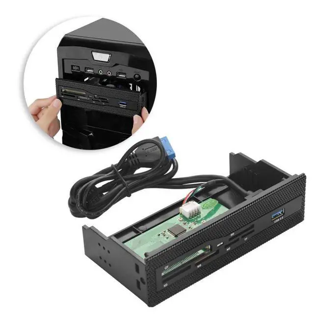 [Format Support] The PC reader support M2/SD/MS/XD/CF/TF and up to 64G expansion. ^^ [Multi Cards Readers] The PC reader has 6 slots offer quick and easy access to the most common-used formats, it could read and write mutiple cards at the same time to keep you away from the hassle of constant unplugging and re-plugging. ^^ [USB 2.0 High Support] The high speed front USB 3.0 interface for an efficient and effortless data transfer. Support USB 2.0 high. ^^ [Compacibility with Any 5.25" Pc Front Panel] The PC reader is perfectly compatible with any 5.25 PC front panel.