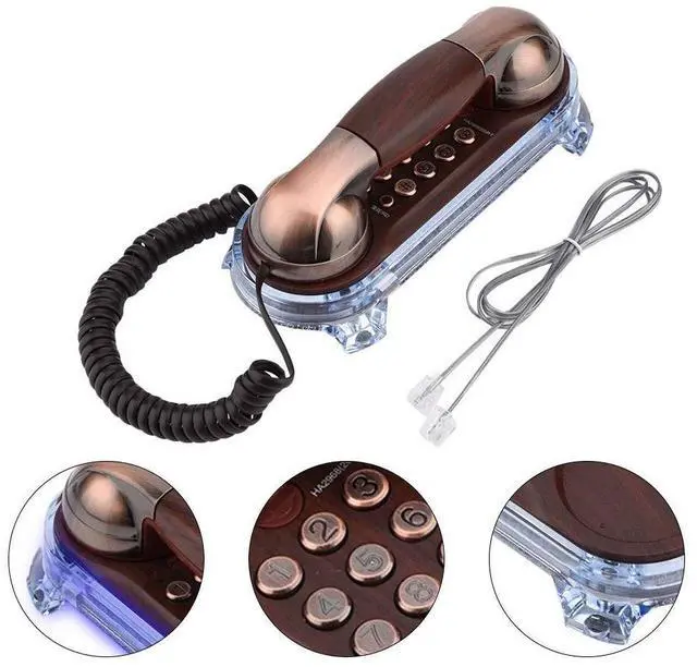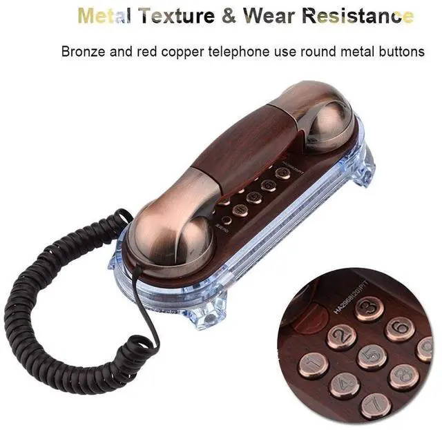 With multifunction including audio-frequency dialing, mute, redial, pause function, it is the combination of excellent decorations and high performance. It also can be a gift for your friends, family members of business partners ^^ [Unique & Classical Design]--- Double Placement, the bottom with non-slip mat allows you to place this vintage corded phone on the table without worrying slipping, and the wall-mounted design allows you to place it on the wall (Not suitable for U. S market). Compact and mini size (197 x 86 x 79mm), it won't take up much space ^^ [High Quality & Exquisite Workmanship] --- Bronze and red copper telephone use round metal buttons, while round clear plastic buttons for the black walnut one, heavy duty and strong, wearable and; round push buttons are more suitable for human habits and more comfortable.