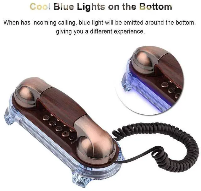 This small retro telephone can be an excellent decoration for home or hotel to high end and elegant feel ^^ [Practical Handle Lock]--- The brackets on the handle holder lock the handle firmly, thus it won't fall easily. The adjustment key on the back can adjust the ring volume as needed. The handle has a special grain design, easy and confortable to hold, this vintage telephone landline knows you better ^^ [Blue Incoming-Call Flashlight] --- When has incoming calling, blue light will flash around the base, giving you a special experience of answering phones