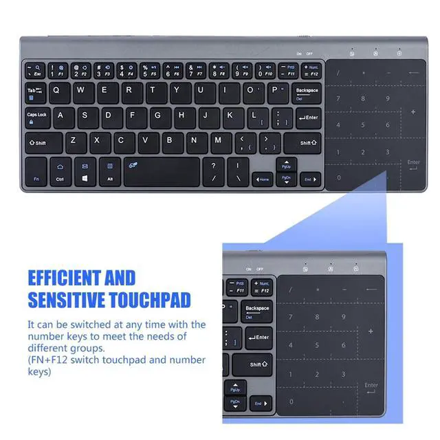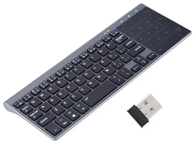 Description: This is a wonderful wireless keyboard with 2.4GHZ, plug and play! Bulit-in smart touch pad which can be used freely. Ultra mini design allowing you carry it around anywhere and anytime. Especially for travel and bussiness.