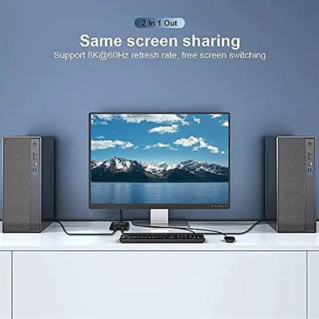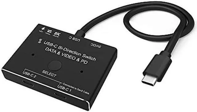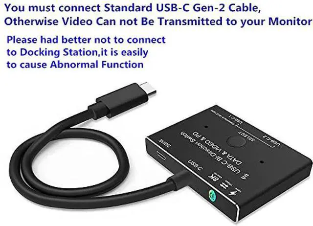 ******Very Important,It is not compatible with Macbook Pro or Mac Series Devices with M1 Chip and LG Monitor.Very Important,You must USB C Gen-2 Cable to ensure Video Output in your Displays,YOU ARE FORBIDDEN TO USE THUNDERBOLT CABLES.USB-C 8K Bi-Direction Video Transmissions&Data&Power Switch/Splitter:The USB-C switcher allow you to connect two USB-C sources to one USB-C display or connect one USB-C source to toggle between two displays,(Two displays CANNOT display simultaneously)