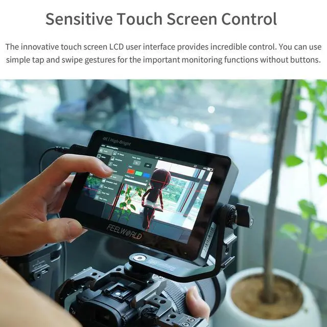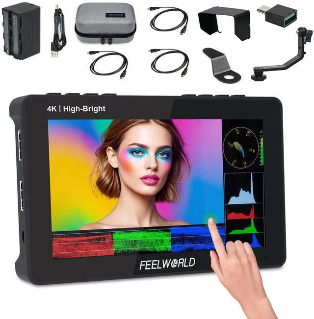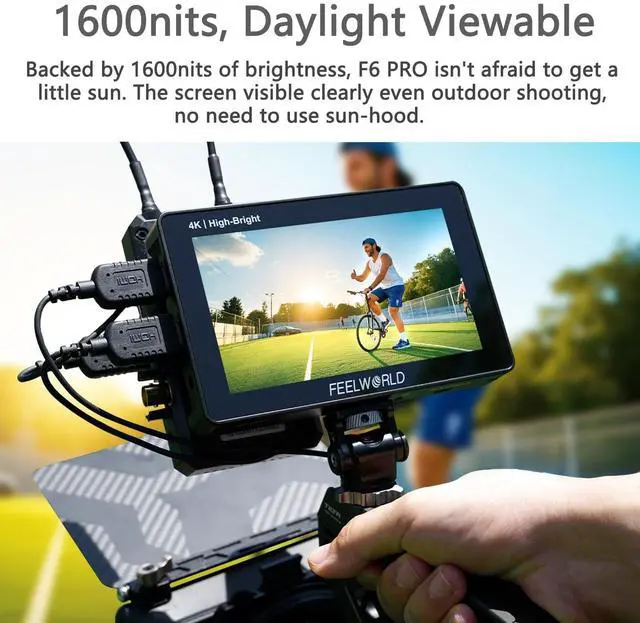 FEELWORLD F6 Pro Field MonitorThis 5.5" 1920x1080 IPS touchscreen monitor combines intuitive pinch-to-zoom controls with professional-grade color accuracy. Boasting 1600nit brightness and REC-709 calibration, it delivers sharp, vibrant visuals ideal for critical on-set monitoring. The responsive touch interface simplifies framing adjustments, while its compact design ensures portability for filmmakers and photographers. ^^ Power External Equipment Quick-MountFeaturing a built-in F750 external power kit on the rear, this monitor allows quick mounting of accessories like LED lights or video converters. Powered by for sony F750 battery, it streamlines setup by saving space and reducing gear weightideal for portable filmmaking.