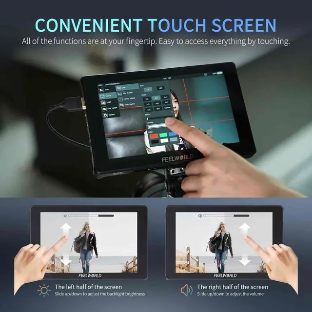 ^^ Custom 3D LutF7 PLUS DSLR monitor supports uploading 32 custom LUTs, allowing for previewing filming looks in the field and making post-production easier. ^^ External Install and Power DesignF7 PLUS DSLR monitor features an NP-F external power supply kit on the back, which allows you to externally mount and power devices with NP-F battery clips, such as wireless mapping, LED lights, and more, eliminating the need for wiring. Ideal for on-site monitoring and location shooting ^^ HDR Monitoring&Sensitive Touch Screen ControlWhen HDR is activated, the display reproduces a greater dynamic range of luminosity, allowing lighter and darker details to be displayed more clearly.
