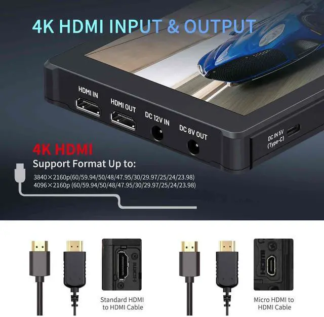 1200nit, Daylight Viewable &7-inch Full HD ScreenHigh brightness 1200nit is viewable in almost every kind of light. Indoors, outdoors, or anywhere you need. With extremely high resolution, the 7-inch IPS panel provides excellent details, accurately reflecting the original colors. Wide viewing presents a more detailed image. ^^ Full Range of Auxiliary FunctionsF7 PLUS DSLR monitor has lots of professional monitoring functions, such as waveform, vector graph, histogram, etc. can help you accurately expose and focus. HDMI support up to 4096x2160/60p &3840x2160/60p signals, compatible with DSLR, camera, and camcorders.