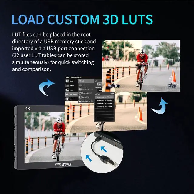 Full HD On-Camera Monitor: FEELWORLD T7PLUS supports custom 3D LUTs, Waveform. These functions make color calibration easier and more intuitive, optimize workflow, and improve working efficiency in the early shooting stage. ^^ Excellent Display, Capture