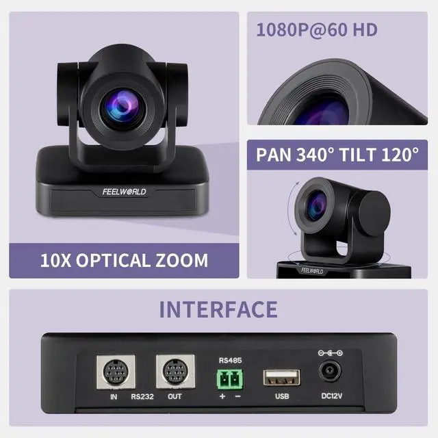 Note: Compatible with Windows 7 ^^ Windows8 ^^ Windows10 ^^ Mac osx ^^ Linux ^^ 1080P HD, 10X ZoomThe high resolution 1080P, outstanding color reproduction and 10X zoom delivers premium optics and life-like video to create the experience of sitting together in the same room, even if you are a thousand miles away. Realize a life-like video experience. ^^ Auto Focus, PTZ MovementTake close-ups on characters, details, and there is no need to worry about blurring your image when you're speaking choice. Capture every person in the room with multi-angle. Built-in two-way high speed and silent pan/tilt, the lens can rotate 340 horizontally (170) and 120 vertically (-30+90) ^^ 255 Preset Positions10 preset positions by IR remote controllerthat can save pan, tilt, and zoom settings, and smoothly transitions between them at the touch of a button. Up to 255 preset positions via VISCA to more productive meetings. ^^ IR Remote ControlYou can use the hand-held remote and operate it by VISCA Pelco D/P controller keyboard to see everything in your workspace. Package Include1 Video Camera, 1 Remote Control, 1 USB 2.0 Cable, 1 RS232 Control Cable, 1 RS485 Terminal Block, 1 Power Adapter, 1 EU Standard Power Cable, 1 US Standard Power Cable, 1 Manual