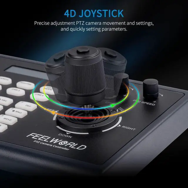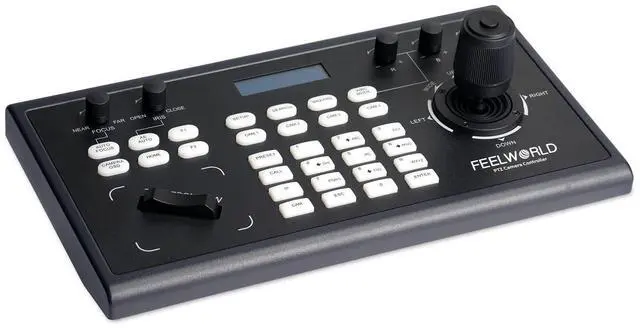 Joystick and Button Control4D joystick precise control allows to precise adjustment for PTZ camera movement and settings, intuitive operation buttons reasonably quickly various operations and settings. ^^ Custom Function Button, LCD ScreenTwo custom function buttons (F1 & F2) are customizable in IP VISCA & VISCA protocols. LCD screen display with real-time status, make you know all cameras controlling better, improve efficiency. ^^ Multiple Control and Network ProtocolsSupports multiple protocols such as IP VISCA, ONVIF, VISCA, PELCO via Ethernet interface and serial interface RS232, RS422 to give you greater freedom in control and settings.