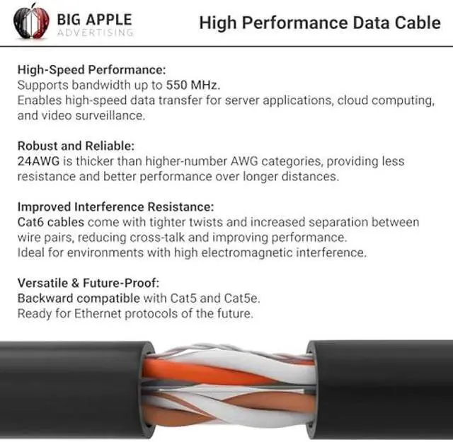 Supporting up to 550 MHz, our cable is perfect for Fast Ethernet, Gigabit Ethernet, and 10-Gigabit Ethernet networks, meeting the CAT6 standard and compatible with 100/1000BASE-T networks.