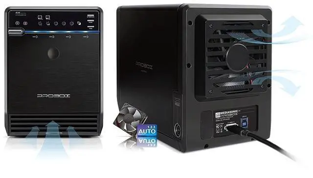 Mediasonic HFR2-SU3S2 ProRaid is a 4 Bay Enclosure. The main feature of ProRaid Box is its Hardware Embedded Raid function. It supports RAID 0/1/3/5/10.