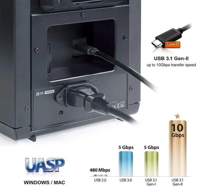 Search ASIN: B073R51B3Y ^^ Transfer rate up to 10.0G bps via USB 3.2 Gen 2 Type C (USB-C to USB-C cable with E-Mark IC included) ^^ 4Kn Native Drive is Supported. Power Disable Feature hard drive is not supported. ^^ Support Power Synchronization, UASP, and S. M. A. R. T. ^^ Built-in temperature sensor, Smart Fan with Auto and Manual mode ^^ User Manual download at Product Guide Section below ^^ Product Made in Taiwan