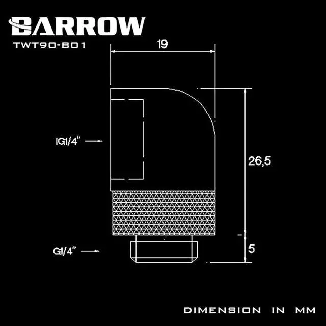 Barrow G1/4" Male to Female Extender Fitting, 90 Degree Rotary, 4-pack