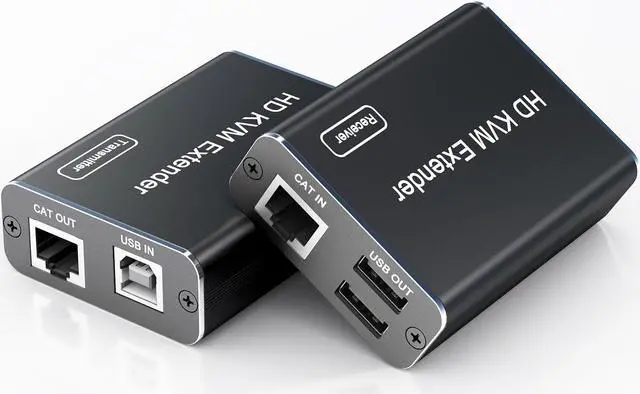 HDMI KVM USB Extender Over Cat5e/6/6a/7 up to 200ft/60M, 1080p@60Hz, 2 USB 2.0 Ports, Plug and Play, No Driver, Supports All Operating System, Keyboard and Mouse USB Over Ethernet