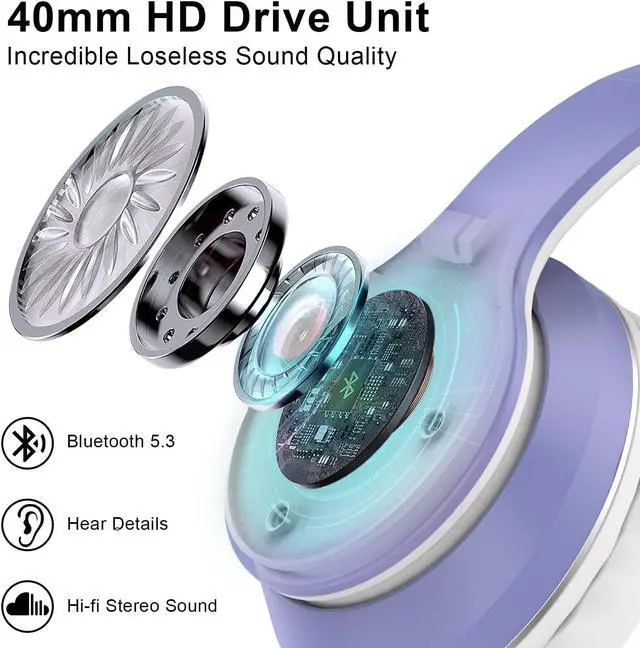 Hi-fi Stereo Sound:The High-fidelity stereo sound benefits from the 40 mm audio driver and advanced Bluetooth 5.3 chip, which deliver exceptionally clear sound with full dynamic range and rich bass and crisp mids and you can enjoy gorgeous deep bass / Hi-Fi stereo sound feast. Just lose yourself in the music.