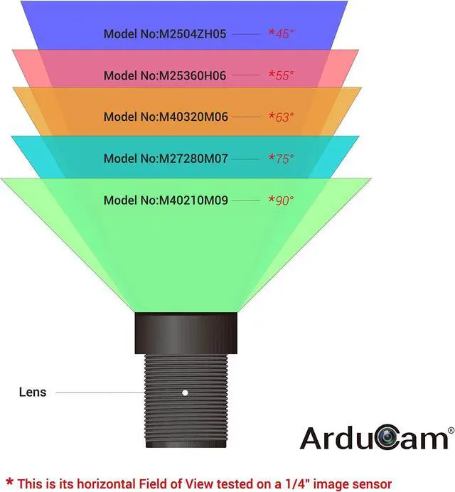 • Come in 5 different FOV (Field of View), Horizontal FOV ranging from 45 to 90 degrees on a 1/4 sensor.