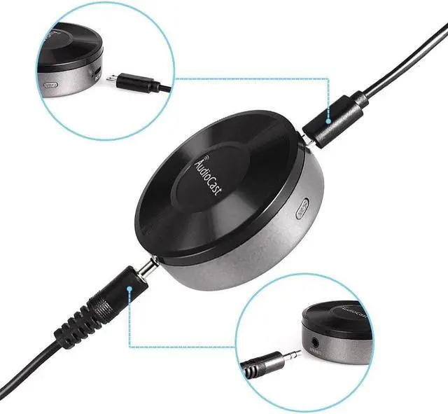 M5 AudioCast is plugged with AUX cable into your speaker for streaming music over WiFi. Once Set up, you can use your smart phone, tablets or PC to cast music to the speakers. You can choose the streamer from AudioCast app to stream the music to speakers; you can search, play, pause, queue songs and adjust the volume right from your fingers.