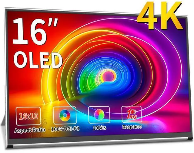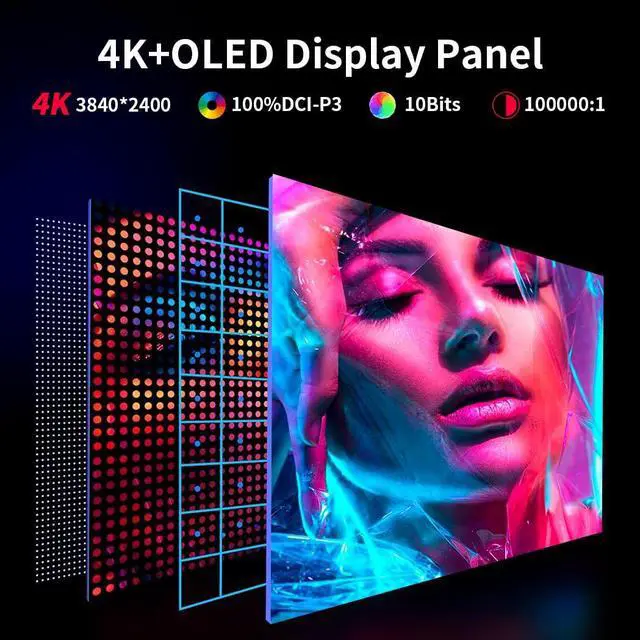 16:10 Golden Ratio: Offer 10% More Screen Real Estate Than 16:9 ,the 16:10 4k Oled Portable Display Allowing Gamers To Expand Their Gaming Field Of View, Conducive To Accurate Strikes, And For Office Workers, 10% Extra Viewing Area Speeds Up Office Software Processing Speed And Web Information Browsing Speed, Greatly Increasing Office Efficiency. And Significantly Improve Office Efficiency.