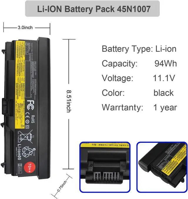 Quality & Powerful: BYTEC Laptop battery for Lenovo ThinkPad 70++ is made of top quality ABS+PC material, high temperature resistance and super durable. Equipped with grade A battery cells to ensure fast charge and low power consumption. Adopted upgraded circuit board to increase the operating time by 25%. 9 cells, 11.1v voltage, 94WH 100% full high capacity make it super powerful to support your laptop for longer time without charge. Over 500 charge and discharge recycle life time.