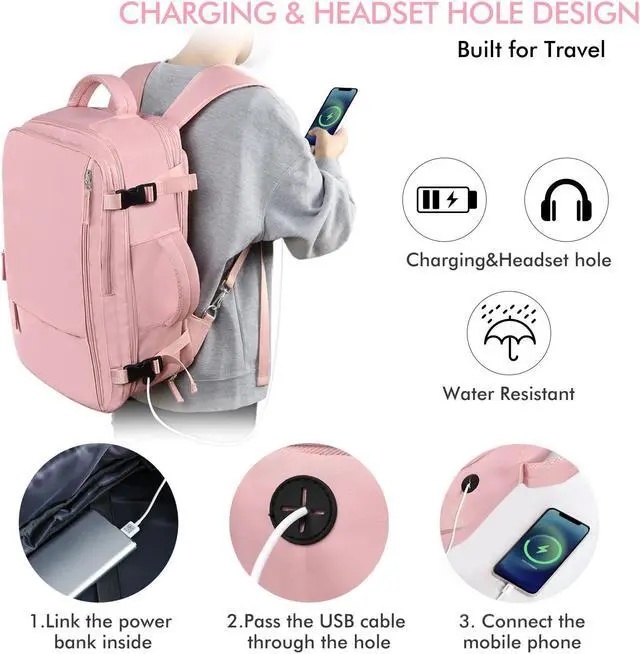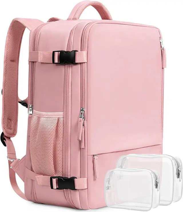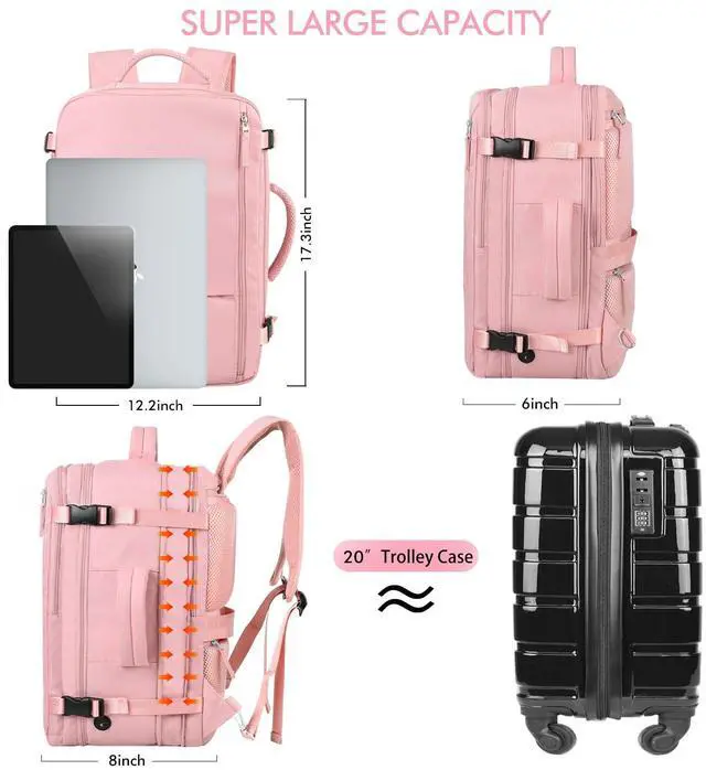 Beraliy Large Travel Backpack for Women, Personal Item Bag Airline Approved, Carry On Luggage, 17 inch Laptop Backpack, Waterproof Backpack, Hiking Backpack, Pink