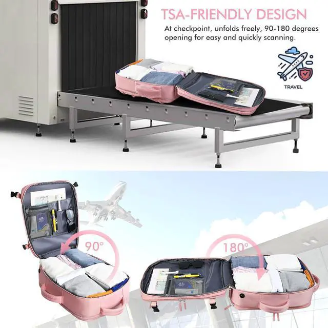 Carry On Backpack for AirplanesSize of the travel backpack: 44x31x21cm/17.3x12.2x8.3 inches, suitable for placing on the top or under the seat in airlines as personal item. This versatile travel backpack meets the carry on requirements of most airlines, such as Easy Jet, Spirit, Frontier, Jet Blue. The 180 degree zipper closure can help you pass the security check quickly. (Backpack Net Weight : 2.5 LB)