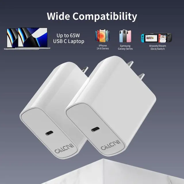 CALCINI 2 Pack USB C Charger Block - Fast Type C Charger for Laptop, Phone, Tablet & More