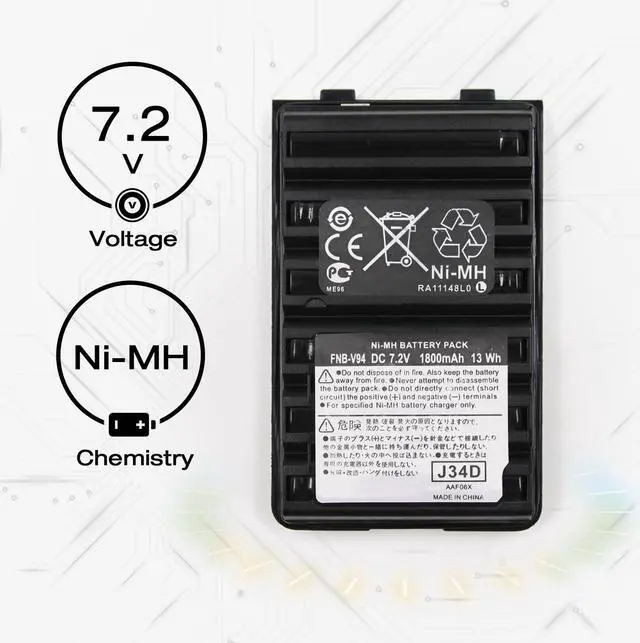 7.2V 1800mAh Ni-MH Battery Pack Compatible for Yaesu Vertex FNB-V94 FNB-83 FT-60R FNB-V57 FNB-64 VX-410 VX-420 VX-420A VX-150 VX-160 VX-170 VX-180 FT-270 Two Way Radio: This battery pack is specifically designed to provide reliable power to Yaesu Vertex radios, ensuring that your communication device remains operational during outdoor activities or emergencies.