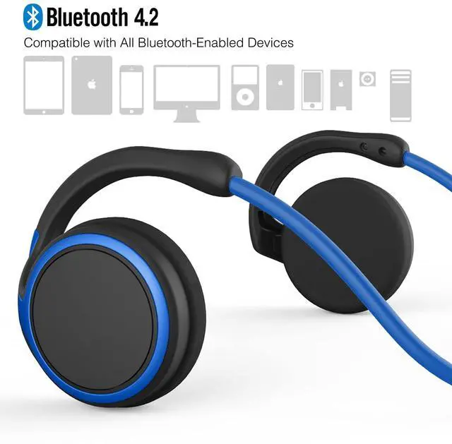 RTUSIA Small Bluetooth Headphones Wrap Around Head - Sports Wireless Headset with Built in Microphone and Crystal-Clear Sound, Foldable and Carried in The Purse, and 12-Hour Battery Life, Blue