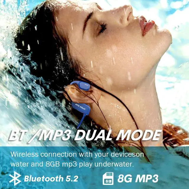 Professional Underwater Swimming HeadphonesThese bone conduction headphones are made for swimming, with a unique IPX8 nano-waterproof coating process that can withstand complete submersion in water. Can listen to music at a depth of 30 meters underwater, designed for swimmers (Note: please use MP3 mode when swimming, do not use Bluetooth)