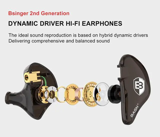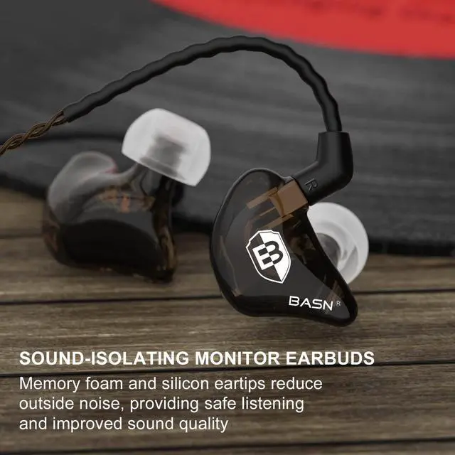 BASN in Ear Monitor Headphones for Musicians, Bsinger 2nd Generation Sound Isolating Earphones with Dual Dynamic Drivers Detachable MMCX Cable (Brown)