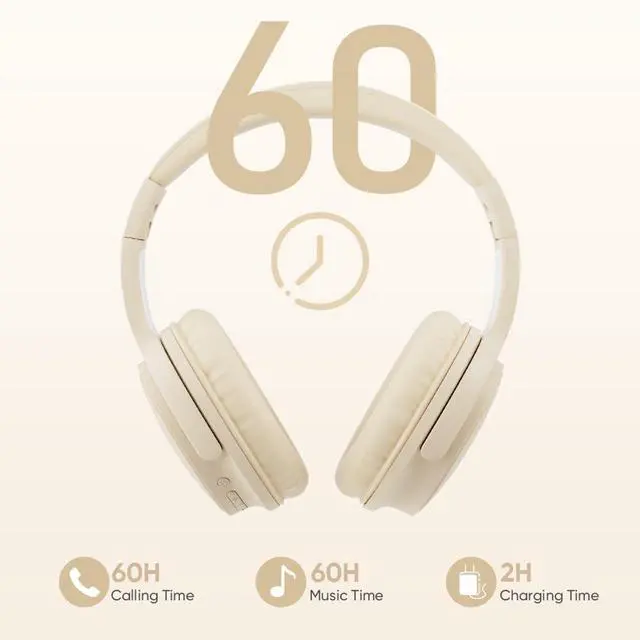 60H Playtime: Equipped with a long-lasting battery, this Bluetooth headset lasts about 60H. With a 3.5mm audio cable, it fits all kinds of PCs and desktops, bringing convenience to remote meetings or online teaching