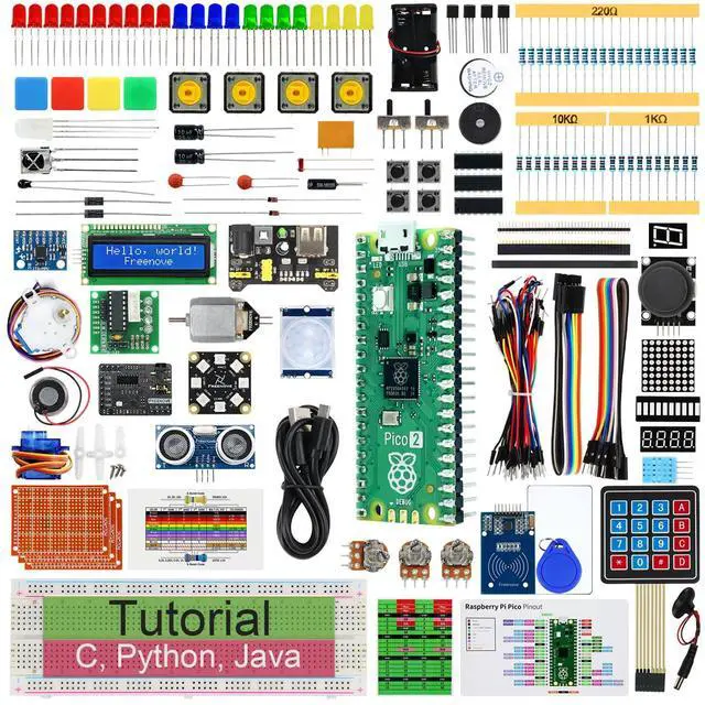 Freenove Ultimate Starter Kit for Raspberry Pi Pico 2 (Included), Dual Arm Cortex-M33 and Dual Hazard3 RISC-V Microcontroller, 767-Page Detailed Tutorial, 224 Items, 119 Projects, Python C Java Code