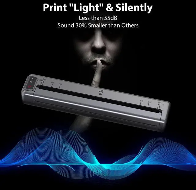 [Print Light & Quiet ]Phomemo Q302 Ultra-Light printer has a noise level below 55dB, 35% quieter than other portable printers. With its new upgraded motor, you can print quietly in libraries, cafes, and meeting rooms without worrying about disturbing others