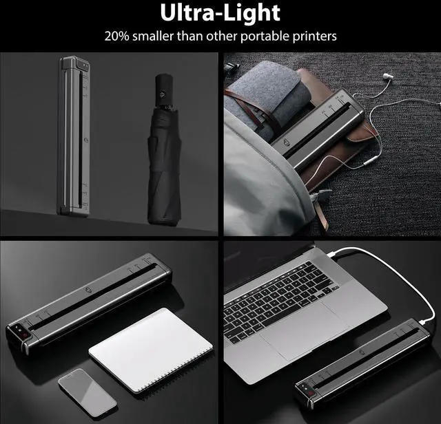 [Ultra-Lightweight]: Phomemo Q302 Ultra-Light compact portable thermal printer is 20% smaller and 35% lighter than other portable printers. It is the size of an umbrella and even lighter. You can hold it in one hand and easily put it in your bag for printing anytime, anywhere