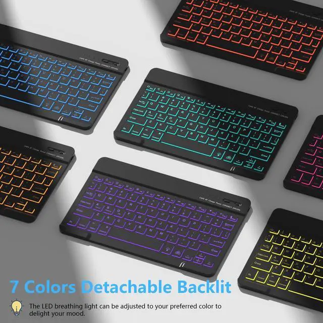 • Flexible and Detachable: Magnetic separation of for iPad 9th generation keyboard case, wireless keyboard can be removed from the case, Type-C charging port; 3 levels of brightness and 7 colors make typing fun and easy, whether in the dark or in bright environments