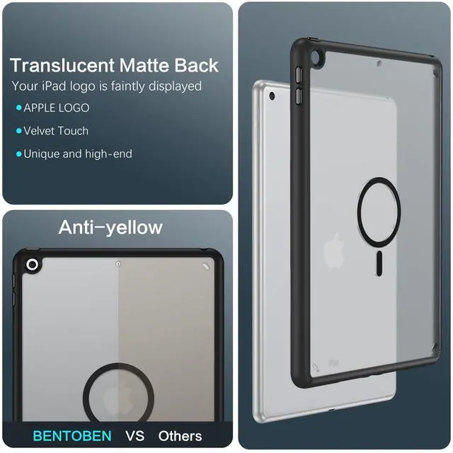 Strong Magnetic Ring: This BENTOBEN iPad 9th/8th/7th Generation Case has a built-in magnetic ring on the back, which enables you to adhere your iPad 10.2 to metal surface or magnetic stand according to your need. Super practial for daily life usage. Without screen protector