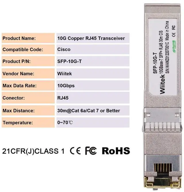 10GBase-T SFP+ 10 Gigabit RJ45 Copper SFP Transceiver Link up to 30-Meter