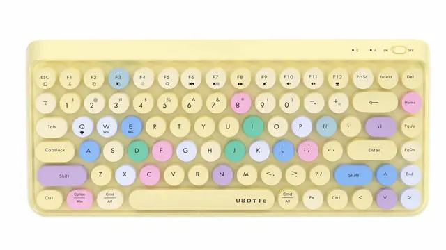 UBOTIE Portable Bluetooth Colorful Computer Keyboards, Wireless Mini Compact Retro Typewriter Flexible 84Keys Design Keyboard (Yellow-Colorful)