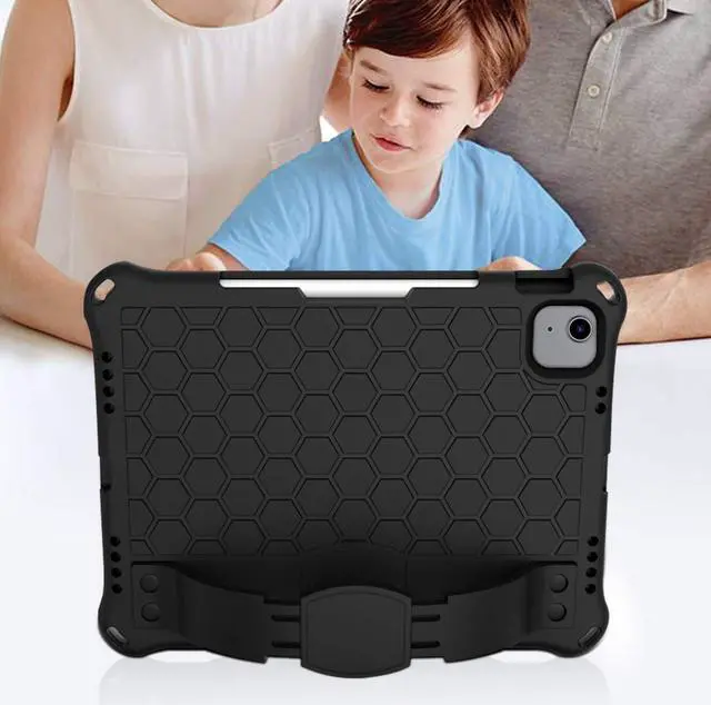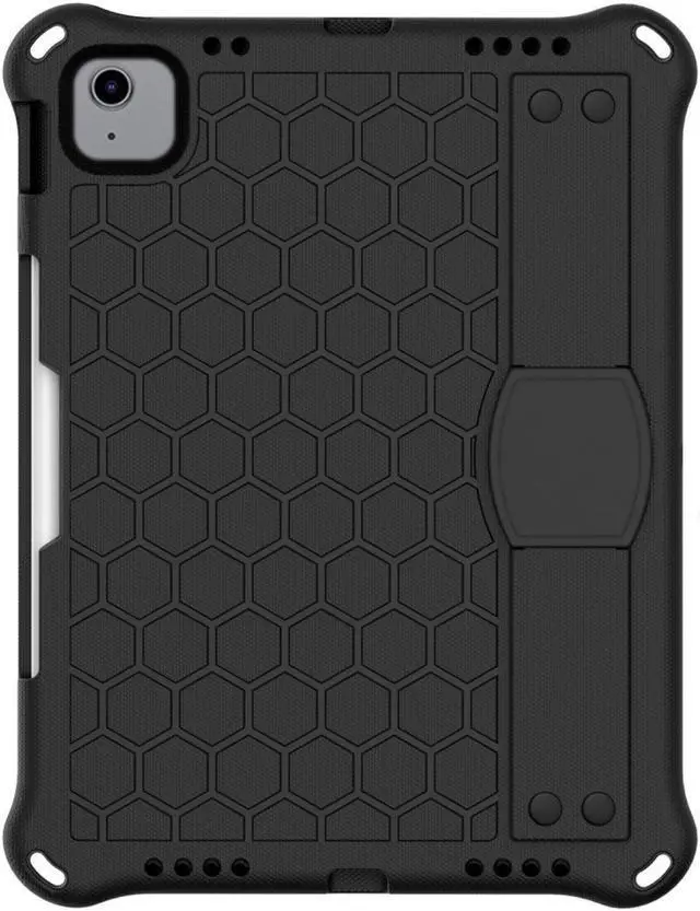 SaharaCase DualShock Protection Case for Apple iPad Air 10.9" (4th Generation 2020 and 5th Generation 2022) [Shockproof Bumper] Rugged Grip Screen Protector Kickstand Hand Strap - Black