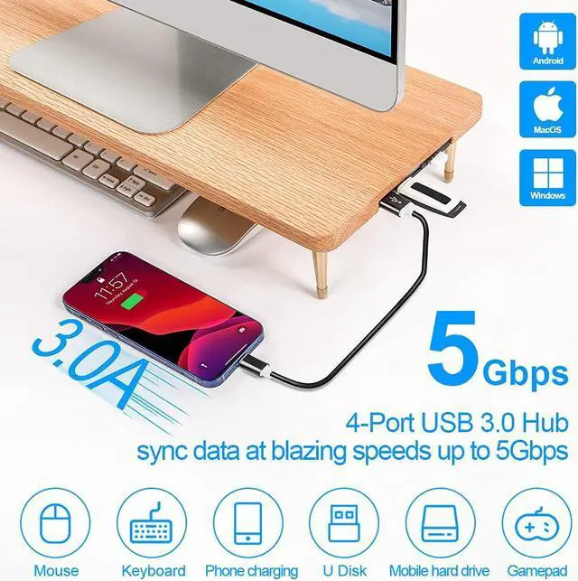 CRAFT KITTIES Wood Riser Monitor Stand with USB Ports Computer Stand w/Slot for Tablet & Cellphone Computer Riser w/Big Storage, Dual Monitor Riser for PC, Computer, Laptop, Printer